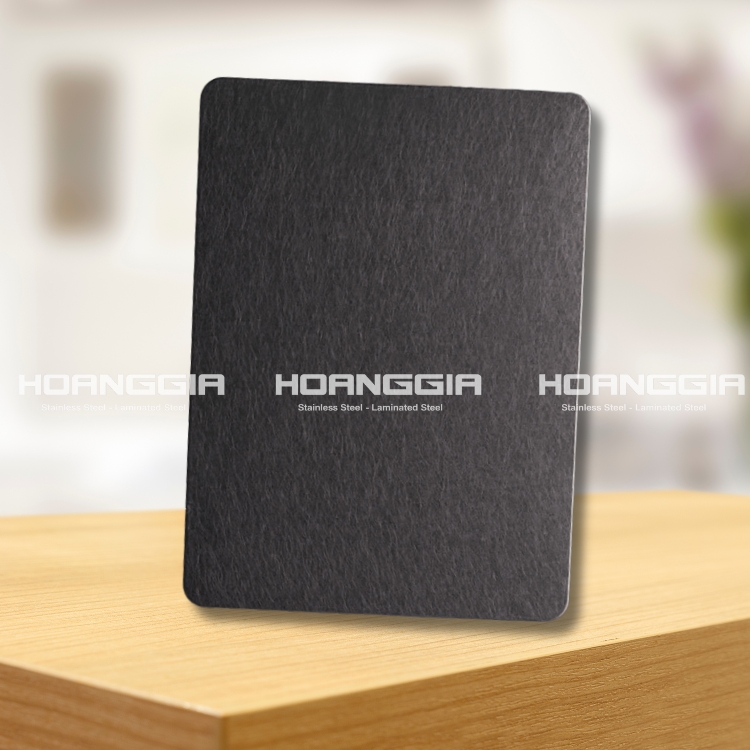 Vibration Black – Inox xước rối đen là thép không gỉ đã được xử lý bề mặt thông qua các kỹ thuật đánh xước hiện đại. Điểm đặc biệt của loại inox xước rối này chính là các vân xước sẽ được tạo ra một cách ngẫu nhiên, đa chiều.